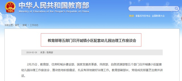 為了加快推進此項工作,近日,教育部牽頭,召集5個部委,專題召開城鎮(zhèn)小區(qū)配套幼兒園治理工作座談會,要求各地各部門高度重視,扎實穩(wěn)妥推進此項工作。