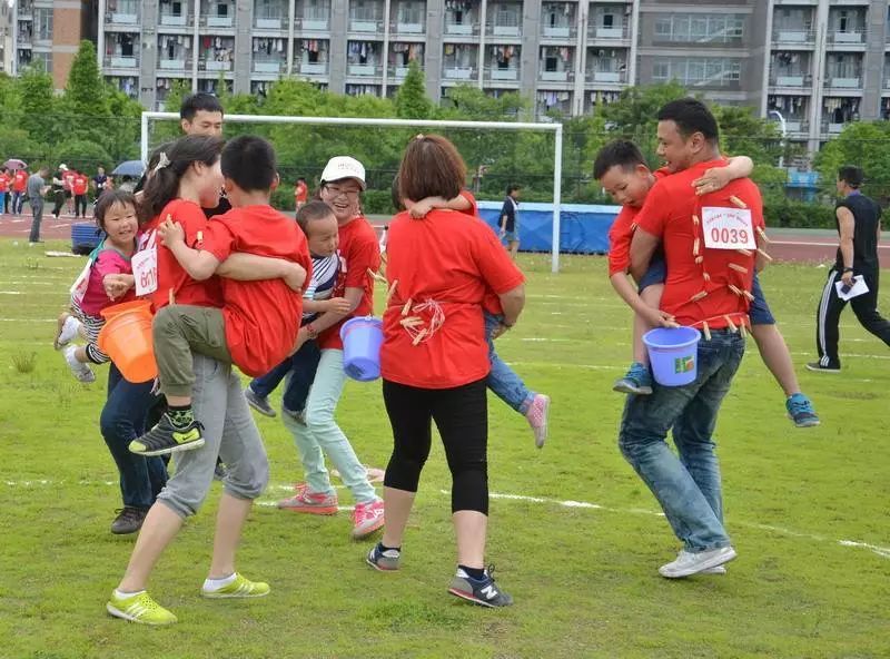 玩法:孩子用手環(huán)住家長的脖子,用腳勾住家長的腰,家長手拎兩瓶灌滿水的雪碧瓶,從起點跑向終點,在終點繞過椅子障礙,再跑回起點,速度最快者獲勝。