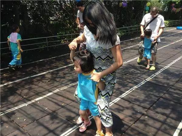 玩法:每個家庭由一名家長和一名幼兒參加,幼兒雙腳踩在家長的腳上,家長和幼兒手拉手,聽到口令后,家長帶著幼兒向前跑,幼兒雙腳不能離開家長的腳,看看誰先到終點。