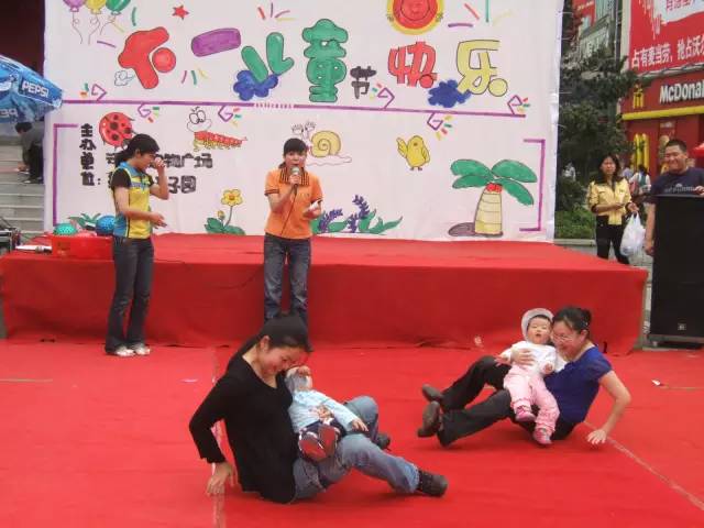玩法:一個圓繩,5個父親站在里面,孩子做在自己父親前面2米處,游戲開始后,每個父親用盡全力去拉繩子,吃前面自己孩子遞過來的草莓,期間孩子不能站起身來,3分鐘內(nèi),遲到最多草莓的父子組合獲勝。